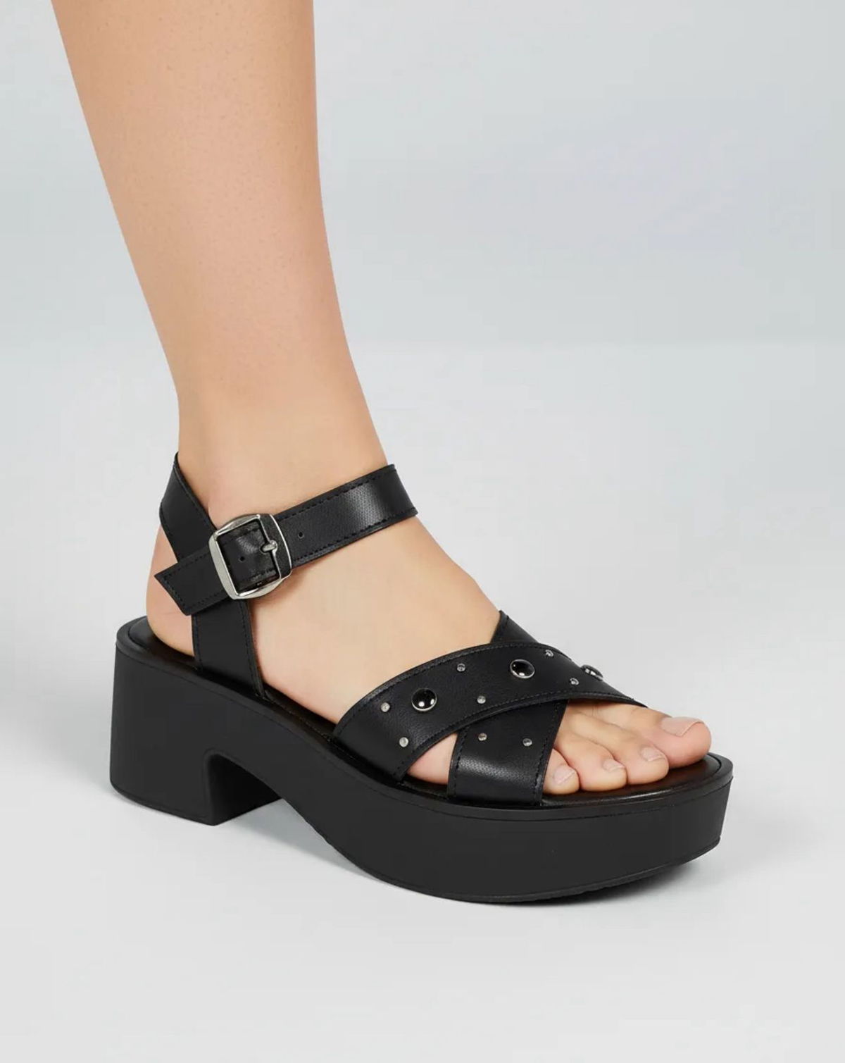 Sandalias baja Urbanos de diseño cruzada con tachas y perlas en la puntera.